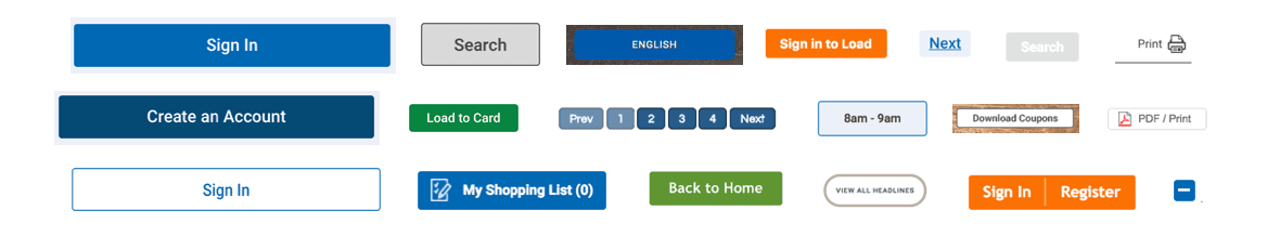 This exercise was very informative. At the time of our first audit, we had over 28 different button styles on the Kroger web properties alone. This was a problem for two primary reasons. Customers were forced to learn new interaction patterns as they shopped, and developers were wasting time writing code for solutions other teams had already built.