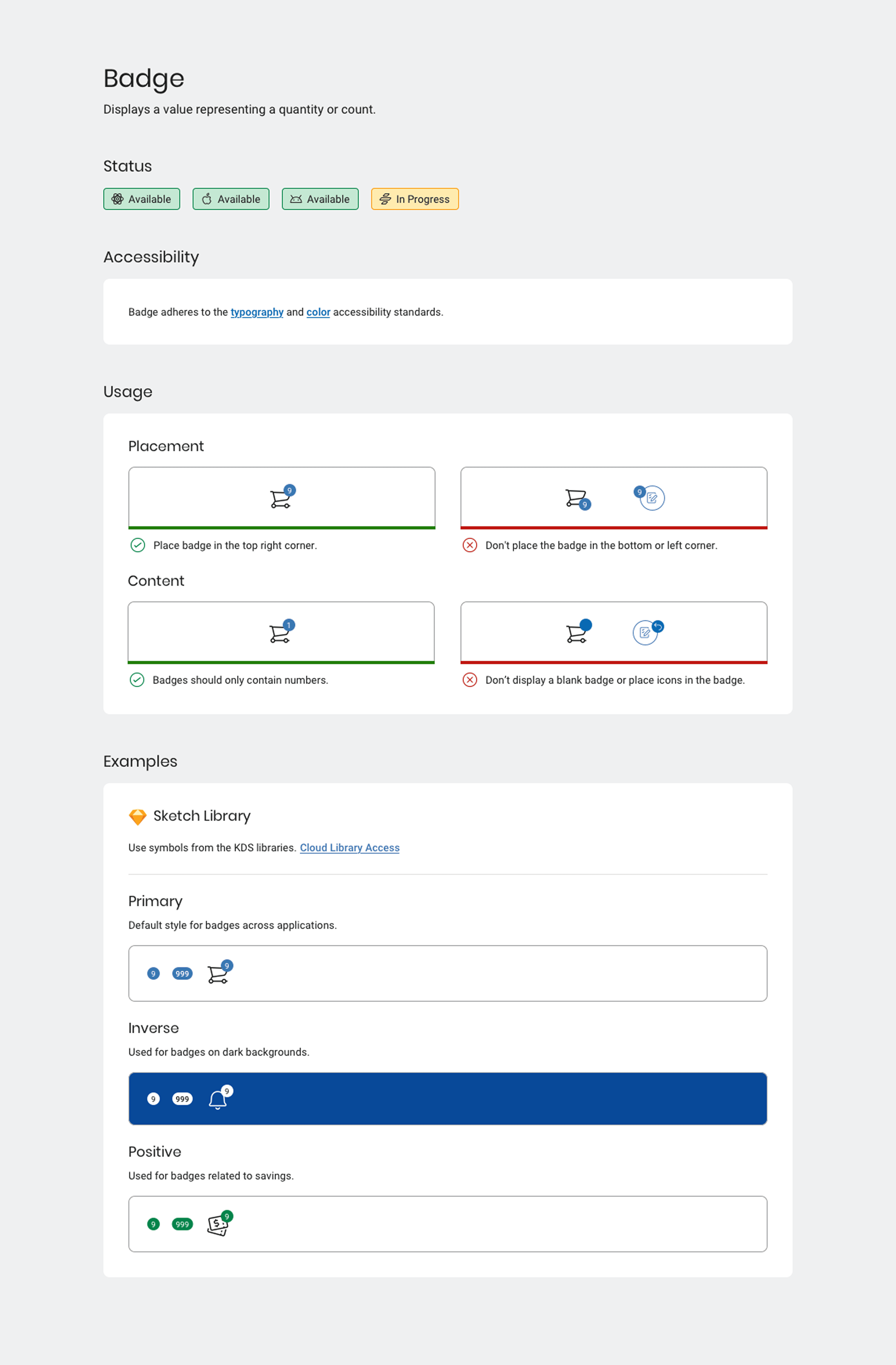 To help designers and developers properly leverage the system we documented guidelines on our internal website. I established the information hierarchy for the site and wrote the content for all of the designer documentation pages. Every page followed a consistent formula presenting visual usage guidelines and interactive examples. Once the site went live we had achieved our goal of creating a single source of truth. The KDS website became a one-stop shop for all information related to the system.
